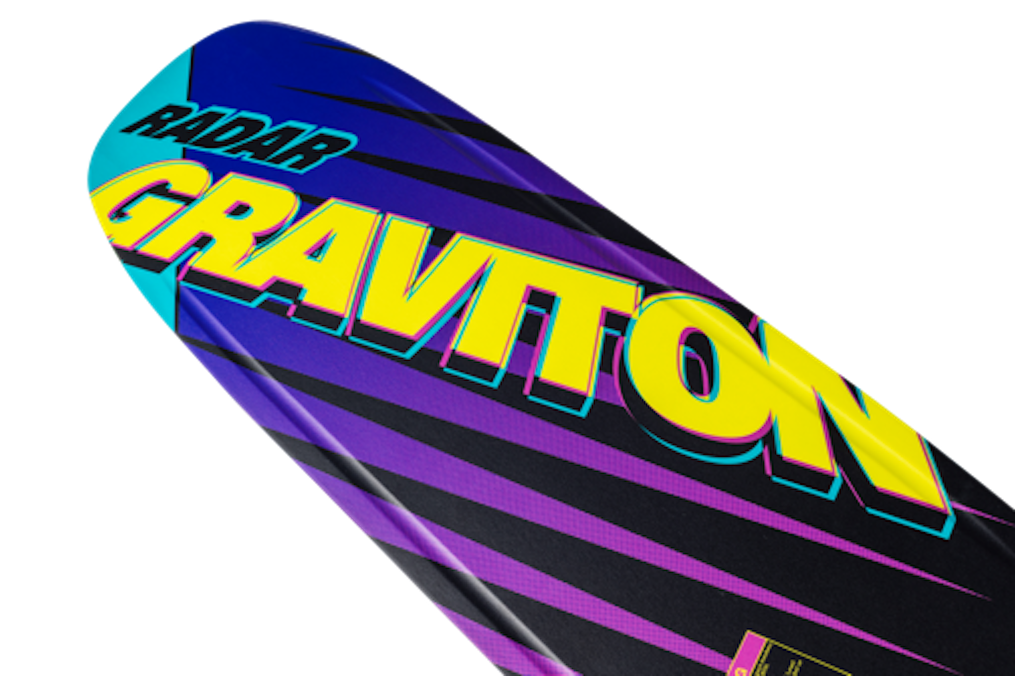 The Radar Graviton is Trick Skiing, Turbocharged. Clean off the crest, smooth on the landing, and dialled for flow. The Graviton is built to boost confidence, tighten your line, and fast track your trick game. Designed to make every move feel easier and more fun, the Graviton delivers next level control from one trick to the next. Its CorFlex construction keeps things lively and responsive, while the GnR channels provide the smoothest, truest tracking ski Radar has ever engineered. From carving to wake jumps, this ski makes progression feel effortless and way more fun. Less fight. More flight. Welcome to your new favourite trick ski.