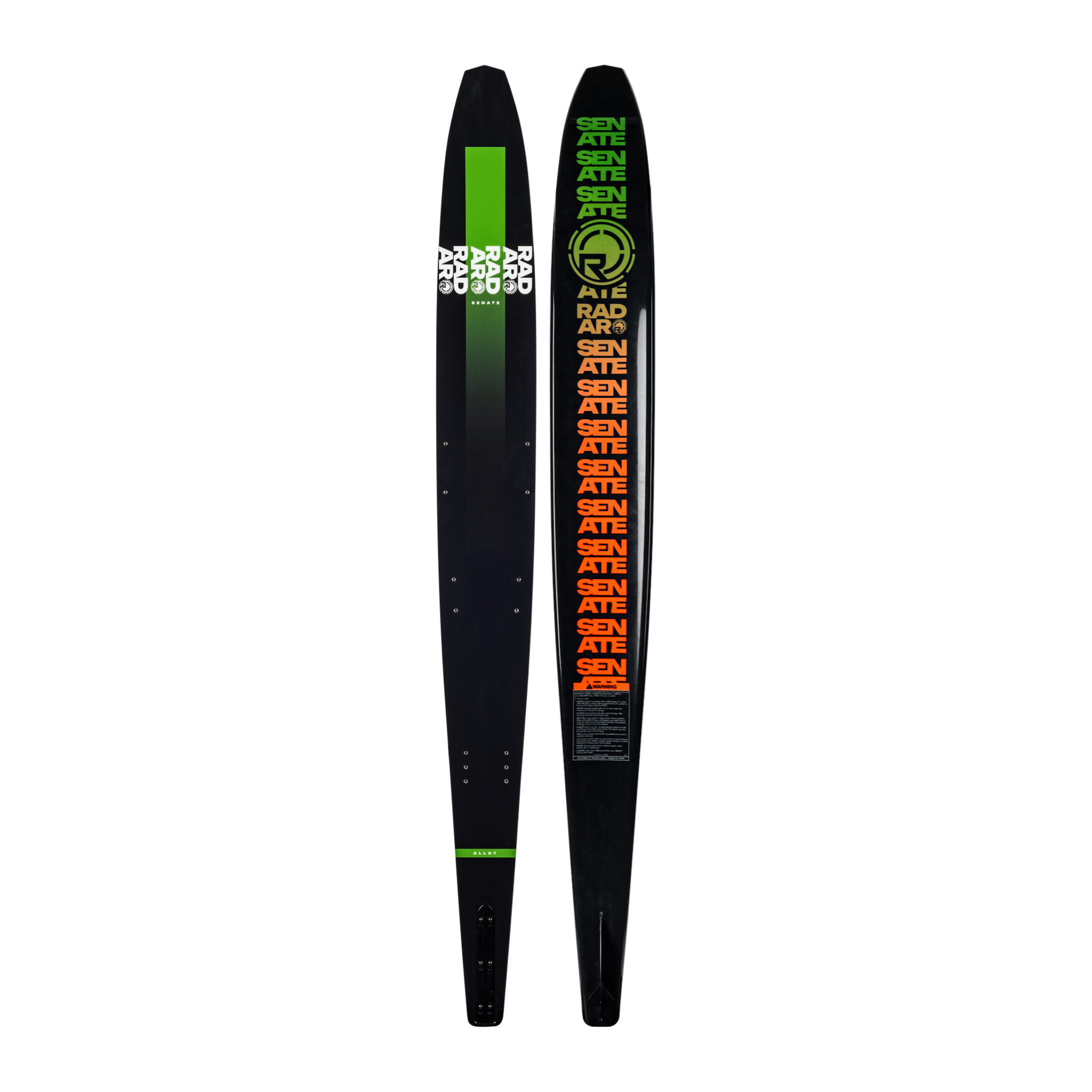 Our most popular ski, the Alloy Senate utilizes a polyurethane core with Paulownia wood stringers wrapped in carbon fiber. This beauty of a ski is stable but fast and an absolute blast to ride whether you’re ripping open water turns or getting into some course action. Ski the Alloy Senate from 26-34 MPH and enjoy the ride.